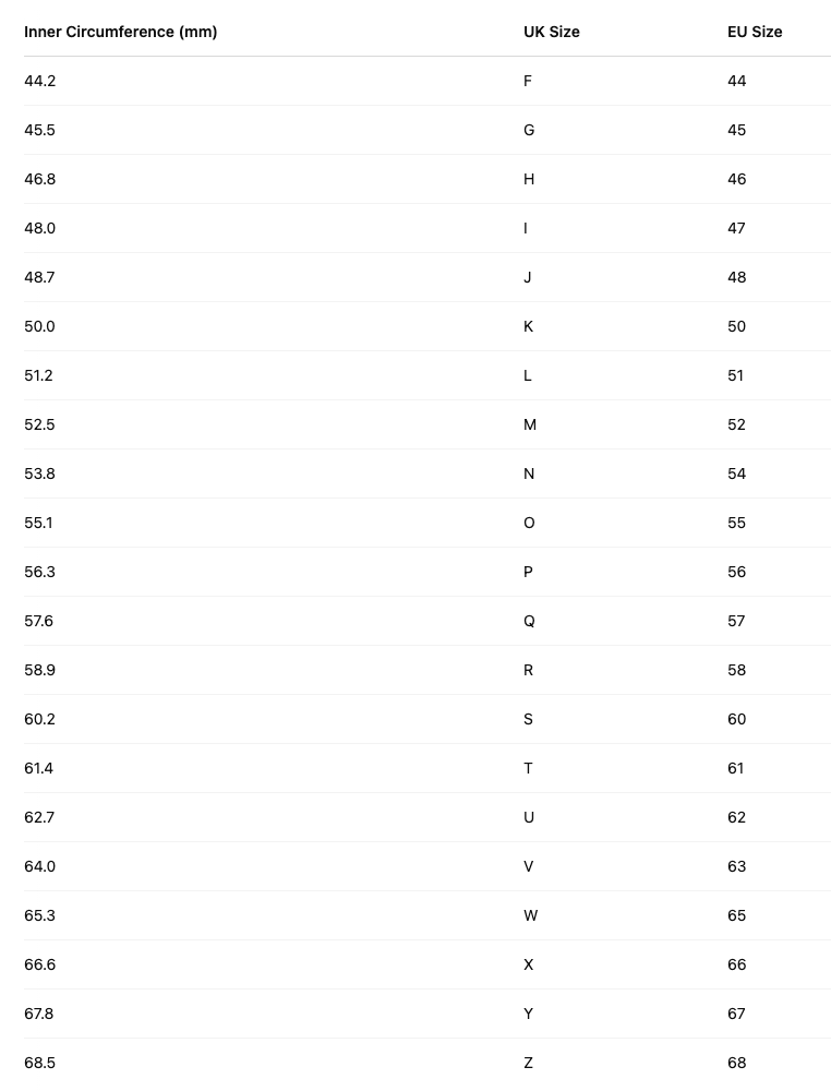 You can find the exact inner circumference of every ring in the product description too - in case this is easier for you!