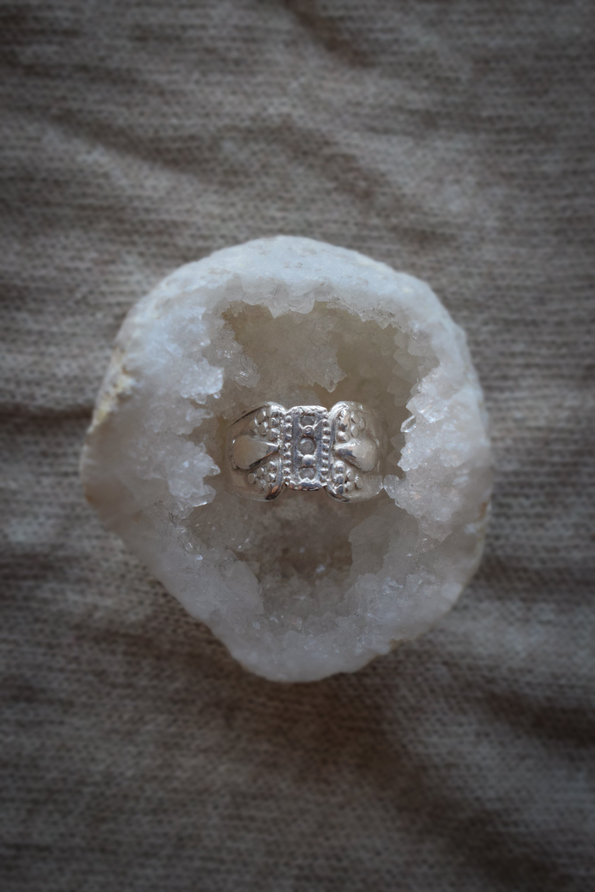 Inspired by ancient byzantine jewellery, this was the first piece I made from fine silver clay. Certainly a challenge for the first time working with a new material! This intricate design was a great way to learn different clay techniques that I brought to my more recent creations!