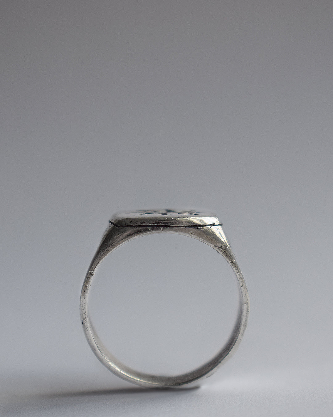 The texture on the band was created by pressing a rough crystal into the wet clay, letting the stone surface leave its energy signature and create an organic pattern.