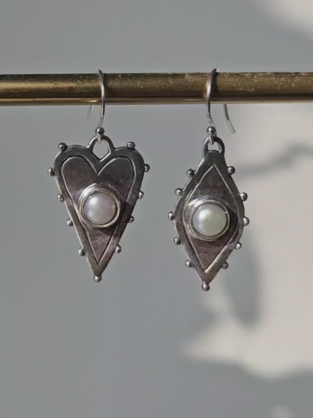 I completed these earrings with a pair of white pearls, to bring some a romantic feel to the vintage look and texture of the earrings.