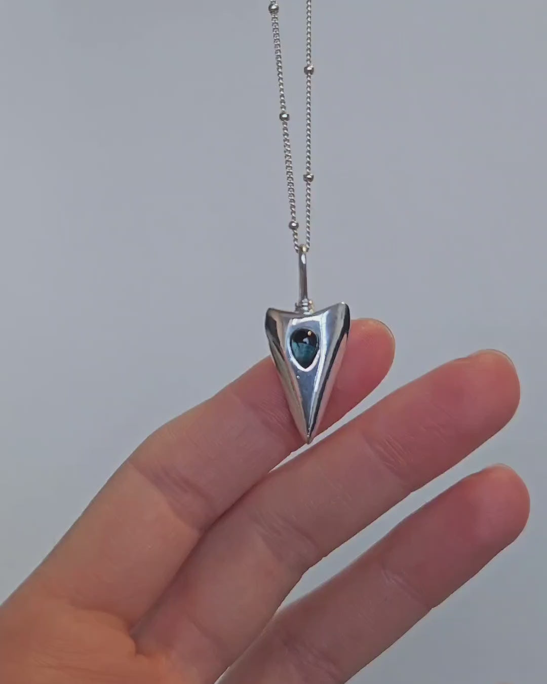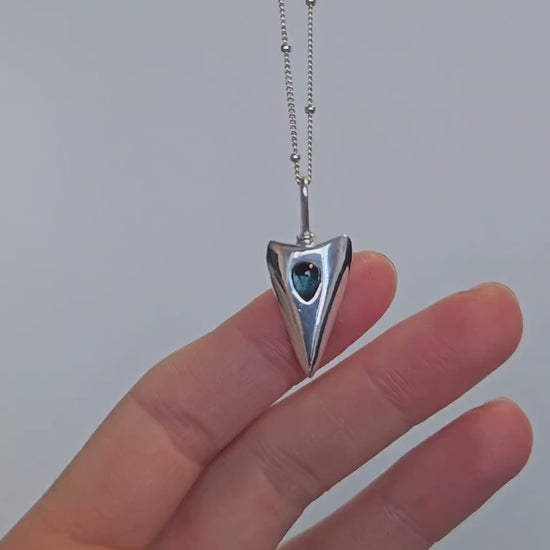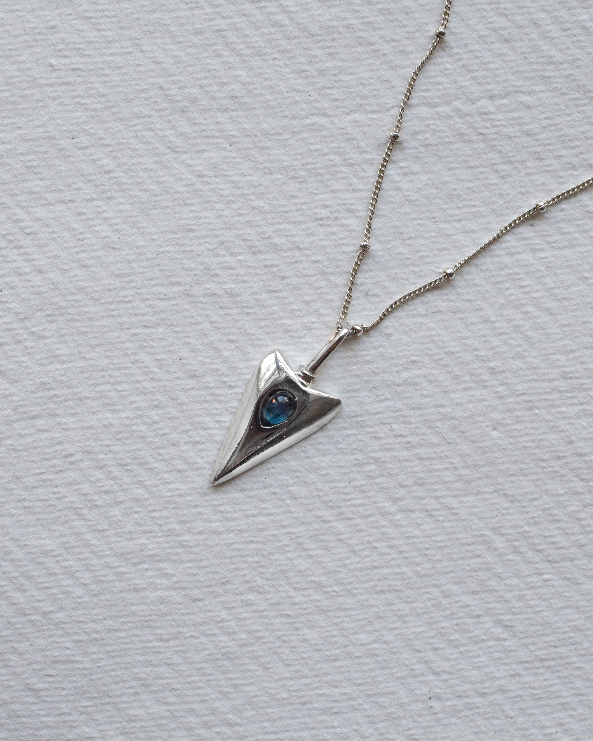 A handcrafted arrowhead pendant symbolises Sagittarius’s fearless pursuit of purpose. At its heart, pear-cut topaz in a London blue colour. Known for clarity and manifestation, topaz is said to sharpen intuition, spark confidence, and support those who follow their own path.