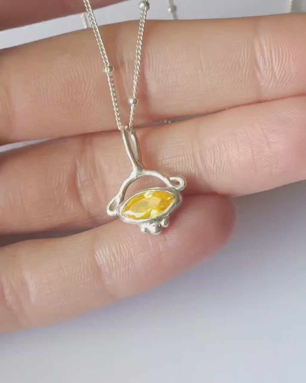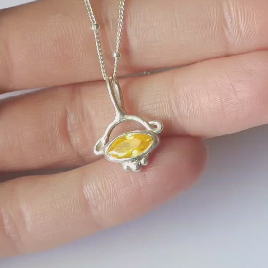 A mystical amulet for embody the sun's fire. A warm, sun-kissed talisman with a modern ethereal spirit. A vivid golden marquise cubic zirconia set in an hand-sculpted silver frame, this pendant feels ancient yet contemporary—like something unearthed from a forgotten civilisation. Its bright, glowing centerpiece symbolises vitality, abundance, and joy. Wear it as a reminder of your inner light and the life-giving warmth you bring to the world!